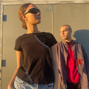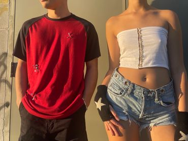 A group of edgy kids walking down All Saints St all dressed in Mia Mod ☆ Now featuring our first drop of Men’s wear. Showing off our newest tanks, tees, and button downs!